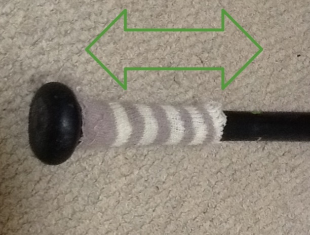 引き手のグリップ回転は上手くいったものの、下の画像のようにバットがずれてコントロールが非常に難しくなりました。
